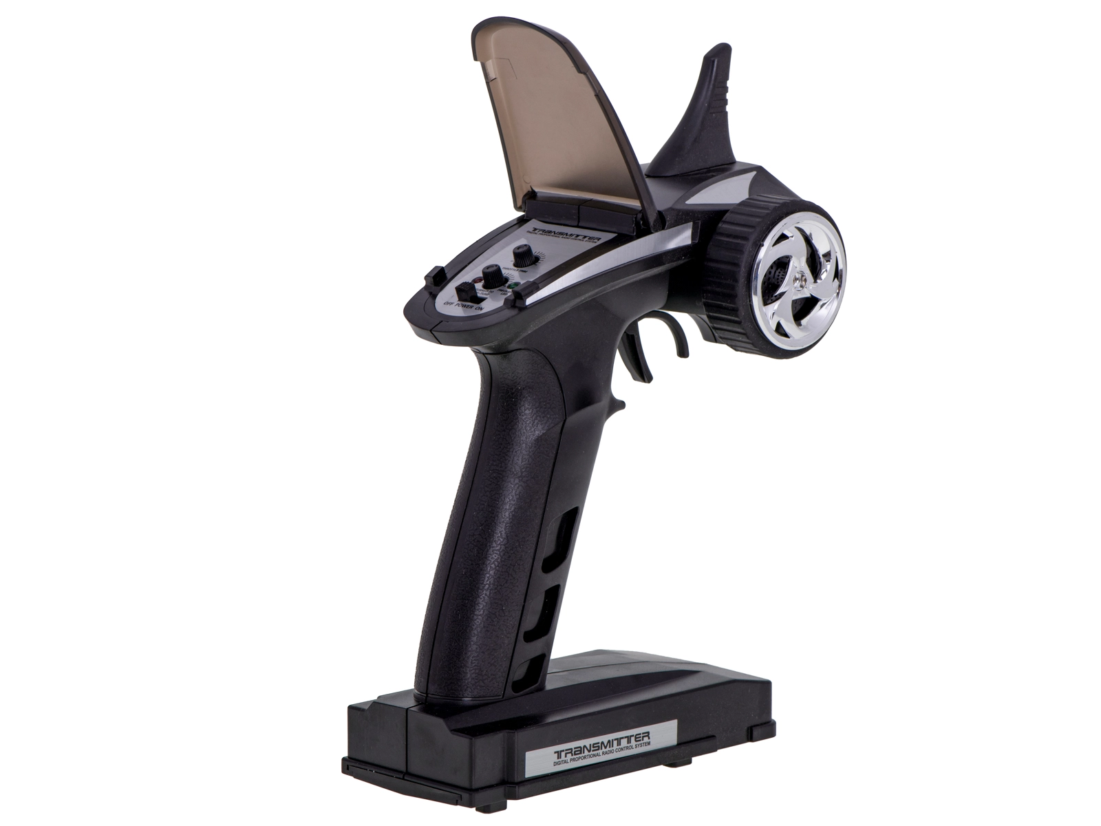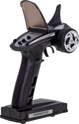 El mando tipo pistola en la frecuencia de 2.4 GHz ofrece una señal estable y un alcance de alrededor de 150 m. Disfruta de una aceleración progresiva, marcha atrás y una dirección sensible sin interferencias.