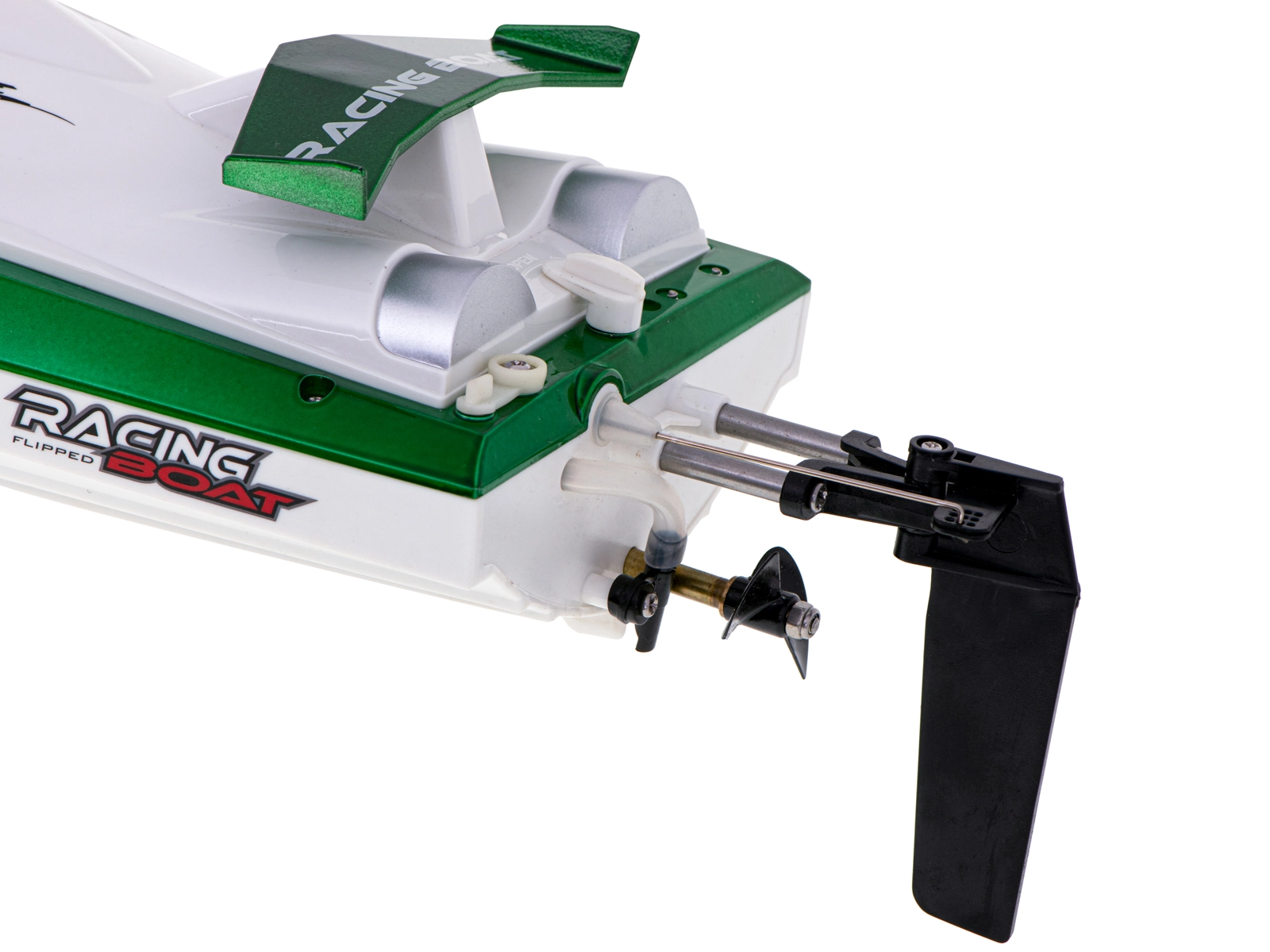 - Set completo – lancha, mando, batería 7.4 V 1500 mAh, cargador, soporte, hélice de repuesto