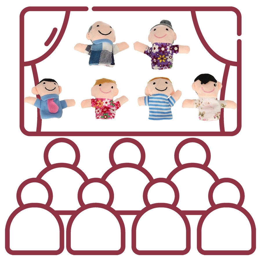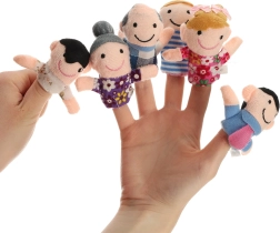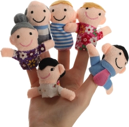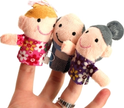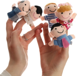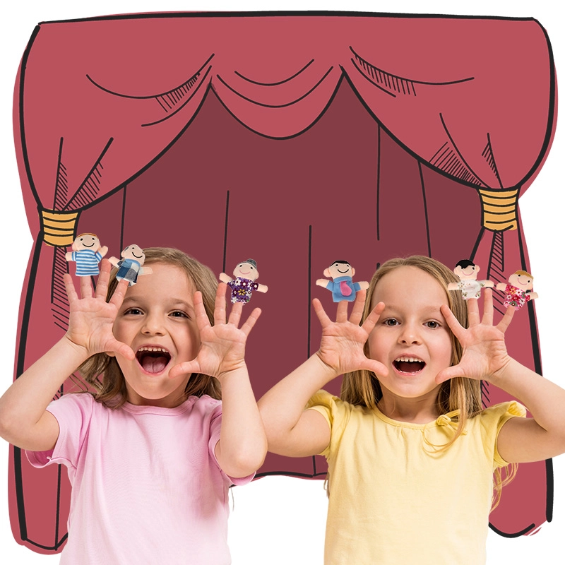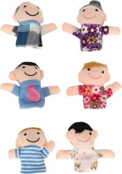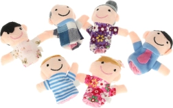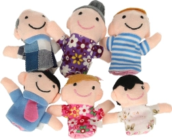 El set de títeres de dedo incluye seis personajes de diferentes colores que representan a los miembros de la familia: padre, madre, abuelo, abuela, hija e hijo. Estos títeres se colocan fácilmente en los dedos y están diseñados para ser divertidos y fáciles de usar incluso para los niños.