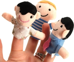 El producto está destinado a niños mayores de 3 años; los más pequeños deben jugar únicamente bajo la supervisión de un adulto. Las dimensiones de cada títere son 7x3 cm.