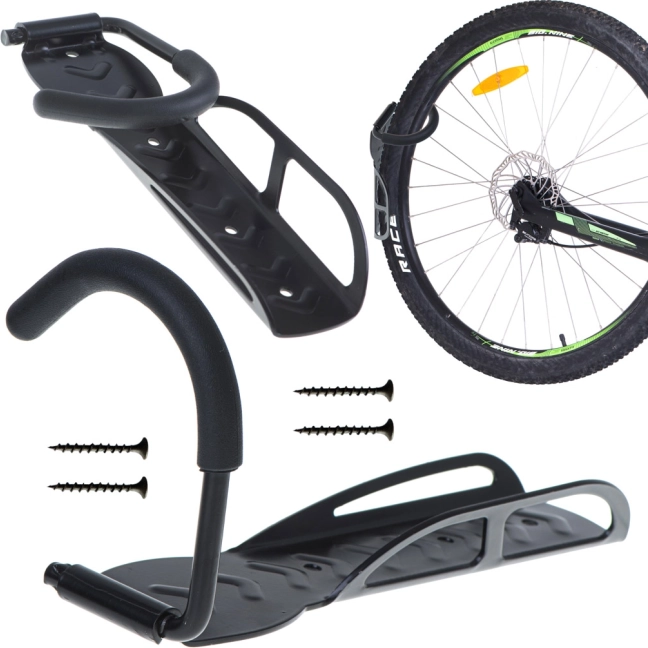 El soporte es adecuado para todo tipo de bicicletas, independientemente del tamaño de las ruedas. La instalación es fácil y rápida: basta con fijarlo a la pared con los tornillos y tacos de expansión incluidos en el paquete. Su estructura robusta y materiales resistentes garantizan que la bicicleta se mantenga segura en su lugar.
