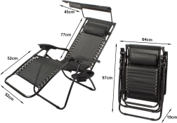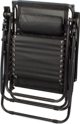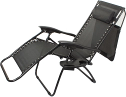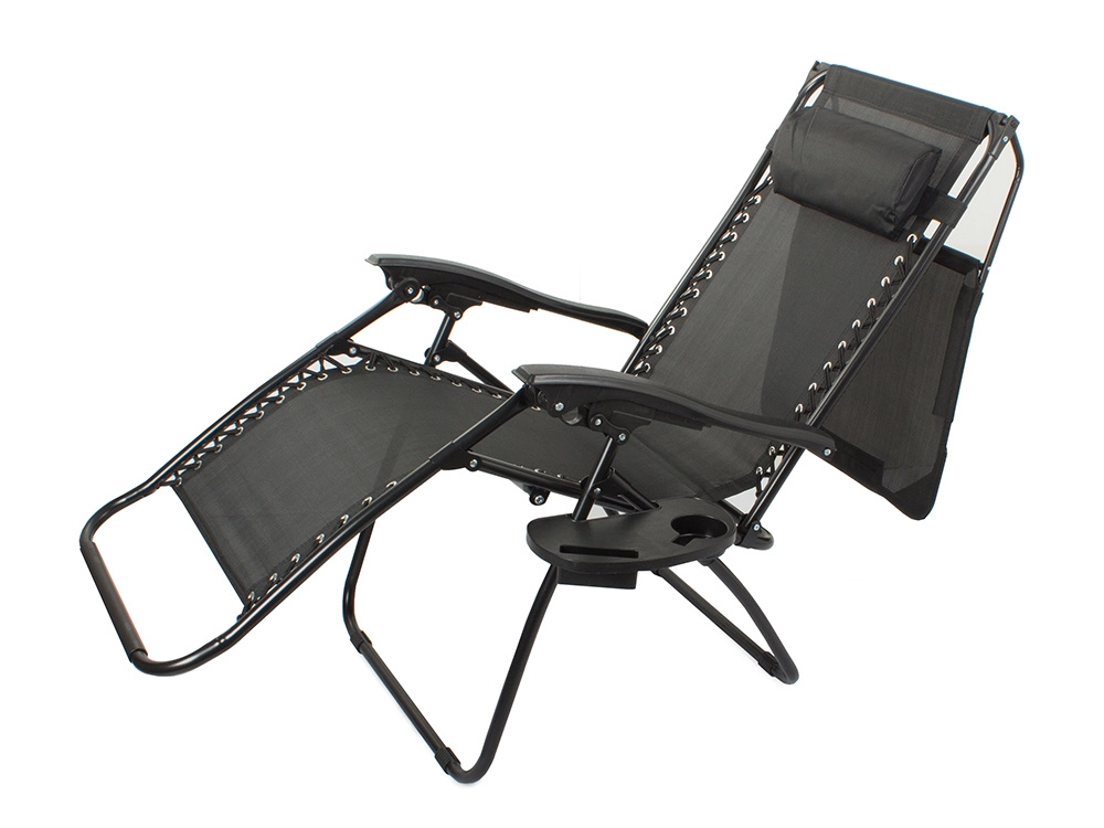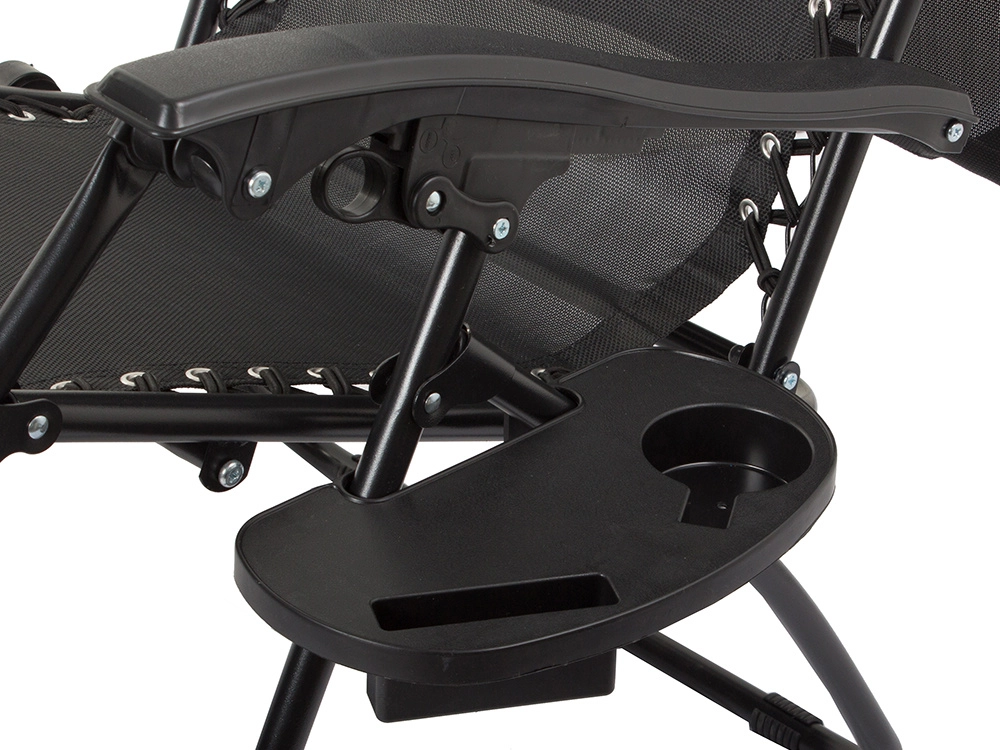 La tumbona se pliega rápidamente a un formato compacto. La mesa lateral sostiene bebidas y pequeños objetos para una relajación sin interrupciones.