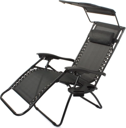 La tumbona Zero Gravity se adapta a tu posición favorita con un movimiento fluido y, gracias al bloqueo, la mantiene de forma segura. La malla transpirable resulta agradable incluso con calor, y el resistente marco de acero con recubrimiento en polvo garantiza estabilidad y larga vida útil. La capota ajustable integrada te protege del sol y el cojín suave sostiene la cabeza.