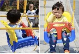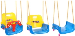 Este colorido columpio 3 en 1 es una opción excelente para bebés y niños mayores. En configuración con barra en T y respaldo alto, transporta con seguridad a los más pequeños; más tarde, se pueden retirar las piezas delantera y trasera y convertirlo en un asiento clásico. Los arneses de seguridad con regulación sujetan firmemente al niño, mientras que la textura antideslizante del asiento evita resbalones incluso en juegos más movidos.