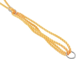 Colgarlo de cuerdas robustas y regulables en altura lleva solo un momento: en el marco de la puerta, la terraza o una estructura de jardín.