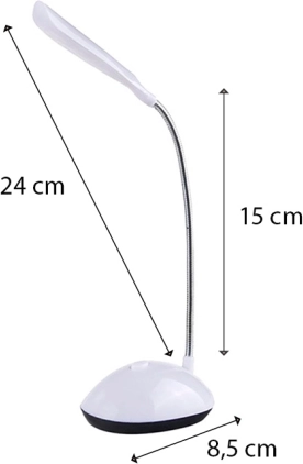 La lámpara de escritorio LED está equipada con 4 potentes diodos LED, que proporcionan una luz intensa ideal para leer o trabajar. Este producto es excelente como complemento para reducir la fatiga ocular frente a la pantalla del ordenador. Gracias a su acabado blanco y liso, se limpia fácilmente.