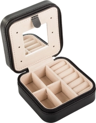 La estructura resistente, el acolchado suave y el seguro cierre de cremallera protegen tus joyas contra daños y pérdidas. Gracias a sus dimensiones compactas de 10 × 10 × 5 cm, cabe fácilmente en el bolso o equipaje de mano; también es un regalo elegante.
