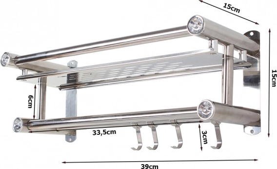 - Estante con ganchos y barra doble, piezas de montaje (tornillos, tacos)