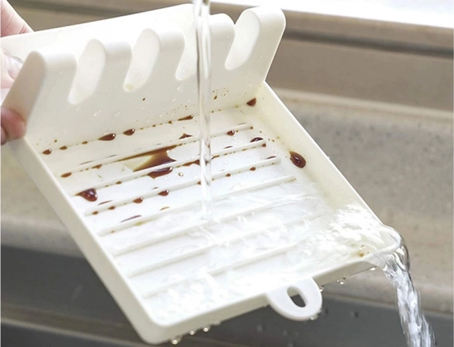 El escurridor para cucharas y tapas es el ayudante ideal para cualquier cocina. Puedes usarlo para guardar hasta cuatro cucharas y tapas, asegurando que todas tus herramientas de cocina se mantengan en su lugar.