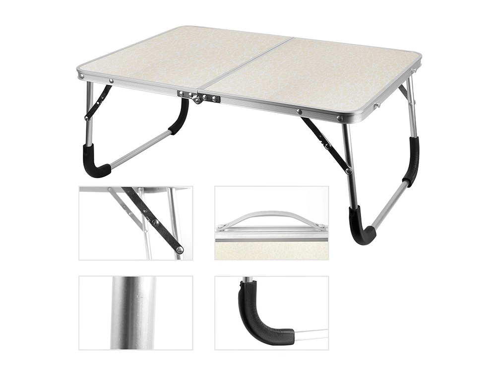 Disfruta de la comodidad en cualquier lugar: de excursión, bajo la tienda, en la terraza o en el salón. La mesa plegable portátil proporciona una superficie estable para comer, trabajar y divertirse. Es ligera, resistente y muy sólida, por lo que es adecuada como mesa de servicio y como mesa para portátil. Las puntas antideslizantes garantizan estabilidad en distintas superficies.