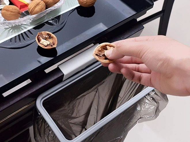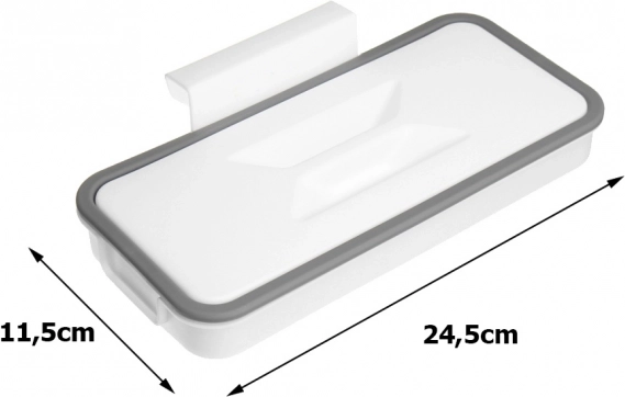 Práctico soporte colgante para bolsas de basura para cocina, baño y garaje. Gracias al ingenioso adaptador, se fija fácilmente a la puerta o al cajón. La tapa hermética mantiene los olores dentro y el hogar limpio. Montaje rápido, uso universal y dimensiones compactas lo convierten en una excelente solución tanto para la separación de residuos como para guardar pequeños objetos.