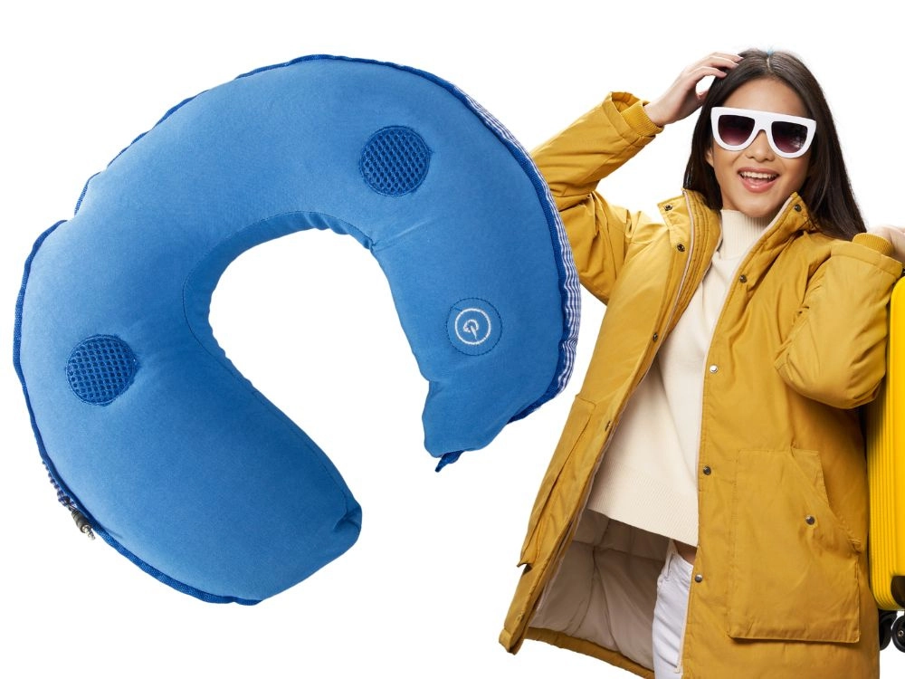 - Almohada de viaje para cuello con masaje y altavoces