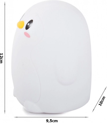 La lámpara está hecha de silicona suave, agradable al tacto. El pingüino es resistente a caídas y aplastamientos, por lo que puede servir no solo como lámpara, sino también como suave peluche. Es ideal para niños que tienen miedo de dormir a oscuras.