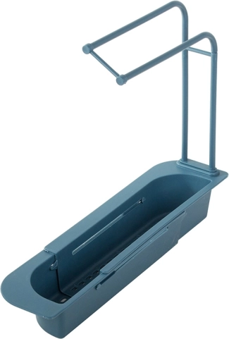 Mantén el orden en la cocina con este práctico organizador para esponjas, paños y otros utensilios de cocina. El organizador ofrece una instalación sencilla gracias a su anchura ajustable, lo que lo hace ideal para la mayoría de los fregaderos.