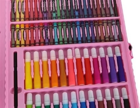 Amplia selección: 24 lápices de colores, 24 rotuladores, 48 ceras, 48 pasteles al óleo, 12 colores de acuarela y prácticos accesorios. Todo para dibujar, colorear y pintar con acuarela.