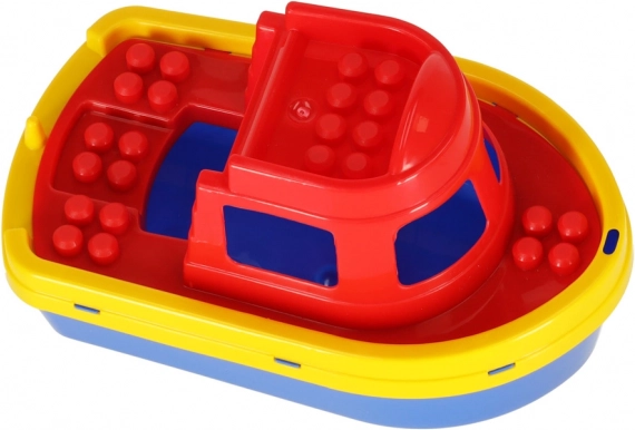 El barco desmontable en tres partes sirve como gran molde para arena y como juguete flotante para el agua: ideal para la playa, la piscina y la bañera.