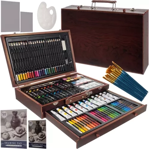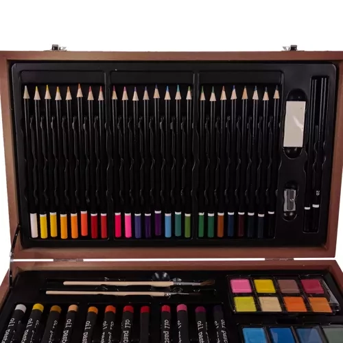 El set incluye una amplia gama de instrumentos artísticos indispensables para pintar, dibujar y otras técnicas. Es ideal para inspirar nuevos resultados creativos.