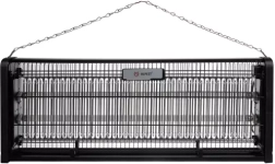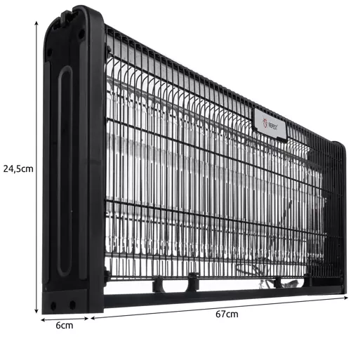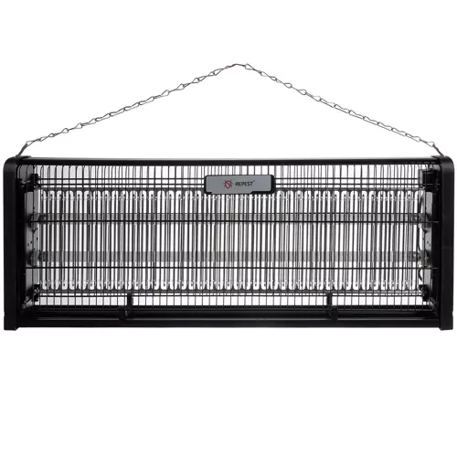La lámpara eléctrica para eliminar insectos Repest utiliza luz UVA, que atrae insectos como mosquitos, moscas y otras plagas molestas. Al entrar en contacto con la rejilla metálica, se produce una rápida neutralización por electrochoque.