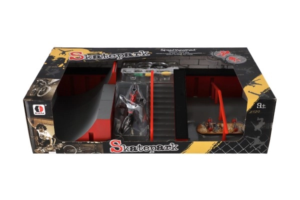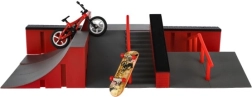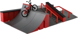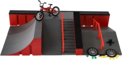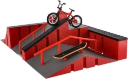 - Set completo: rampa, escaleras con baranda (rail), fingerboard y mini bicicleta BMX